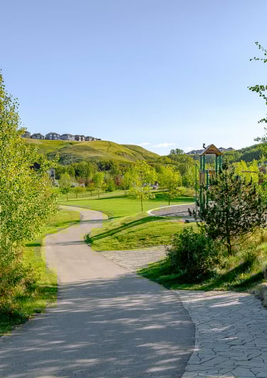 A scenic community perched above the Bow River valley, offering stunning ridge views, extensive natural pathways, and easy access to Fish Creek Park.