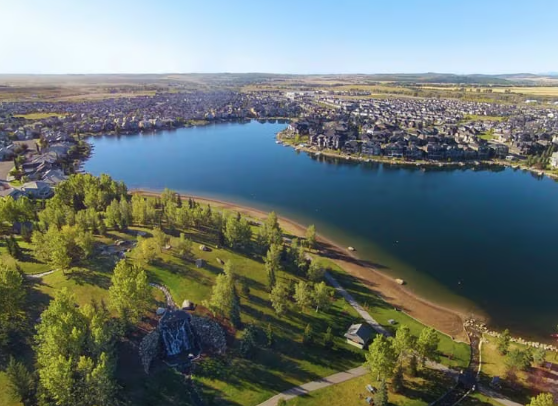 Calgary's first man-made lake community, offering year-round recreational activities.